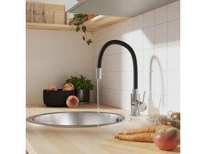 Principales caractéristiquesRaccordementFlexibles d'alimentation 45 cm fournisHauteur totale (en cm)36Hauteur sous bec (en cm)21Profondeur du bec (en cm)21.2CouleurNoir Mitigeur de cuisine delinia eleki noir72,00€PrixQuantité*Ajouter au panier